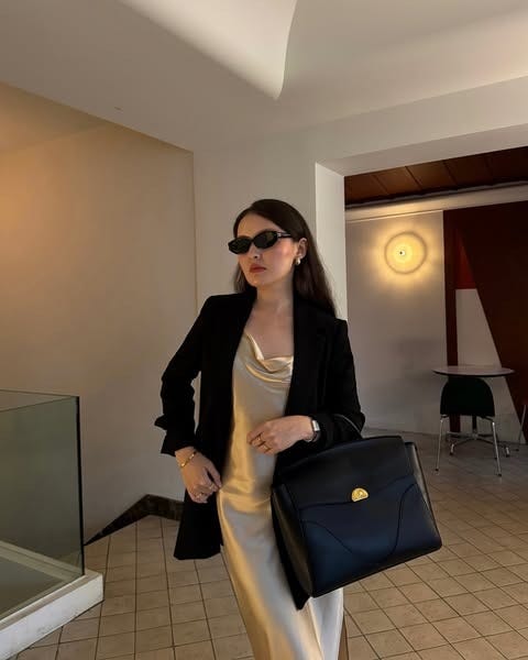 When in doubt, go monochrome. (It’s the universal cheat code for looking like you have your life together.) Think sleek trousers, a draped button-down, and understated gold details that whisper quiet luxury in the best way possible.